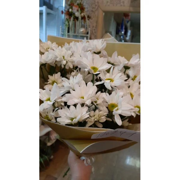 Спасибо, искала ромашки, но ромашки видимо сложно найти в это тяжелое время. ))). Но этот букет ничем не уступает в ромашкости ))). Очень высокие хризантемы почти 1 метр. Огромный букет, если будите заказывать 21 ветку. Однозначно рекомендую.